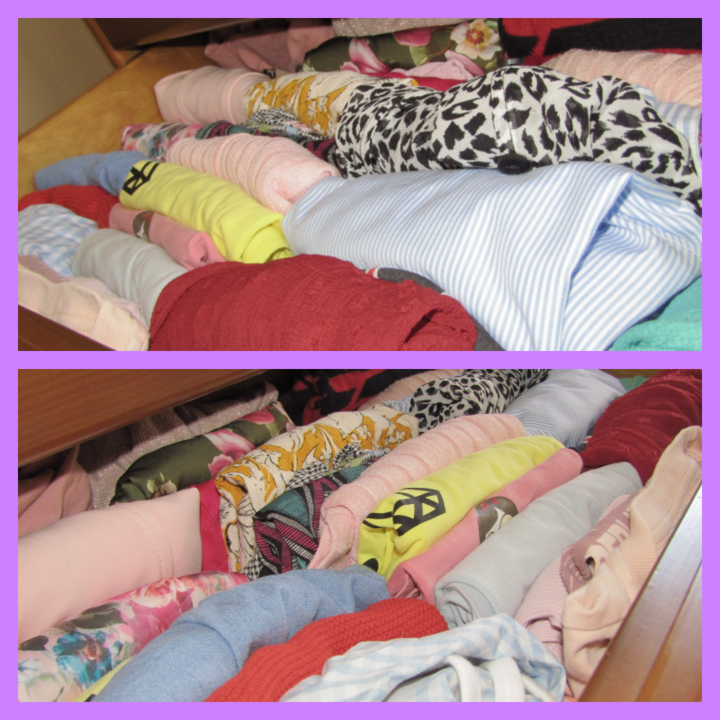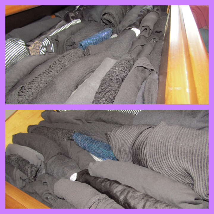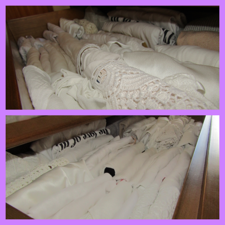 Logo depois organizei as gavetas onde tenho os vestidos e macacões.